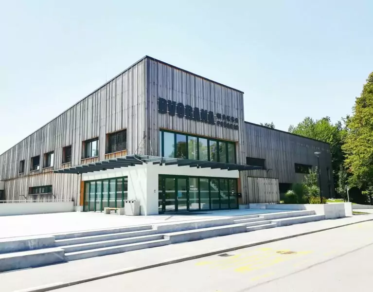 The Maks Pečar Sports Hall is a multi-purpose facility comprising a large multi-purpose hall, a smaller dance hall and a fighting sports hall. The multi-purpose hall, which covers more than 1.500 m2, features basketball, volleyball and handball courts. The hall can be divided by thirds into two side basketball courts and one centre volleyball court, or into three volleyball courts. In addition to sports, the hall is also suitable for various cultural events. There is space for 800 spectators in the retractable stands, stands and the possibility of extending the parterre with chairs on the parquet floor. The full capacity of the hall is around 1500 people.