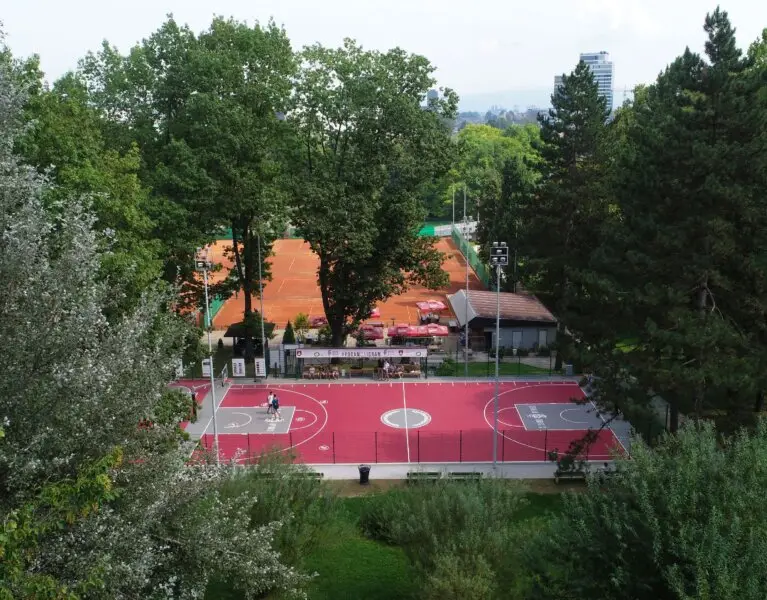 In the fresh air in the green surroundings of the landscape park Tivoli, Rožnik and Šišenski hrib, many outdoor sports grounds offer recreation in contact with nature: the Goran Dragic #PODAMDAIGRAM basketball court, a skate park, a roller-skating rink, a bowling alley, a small bounce football pitch, a mini-golf course, a volleyball court, a handball court or a small football pitch, a basketball court, a badminton court, and a tennis practice wall.
